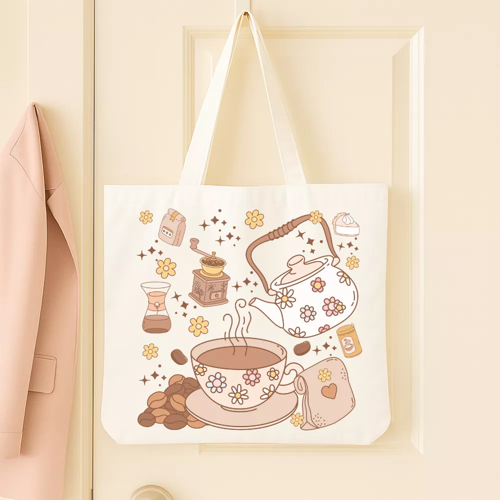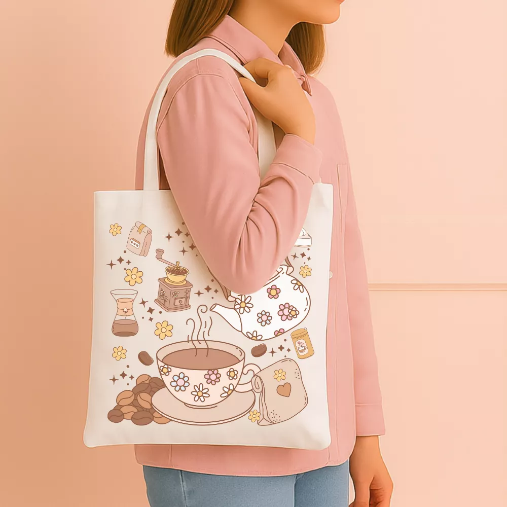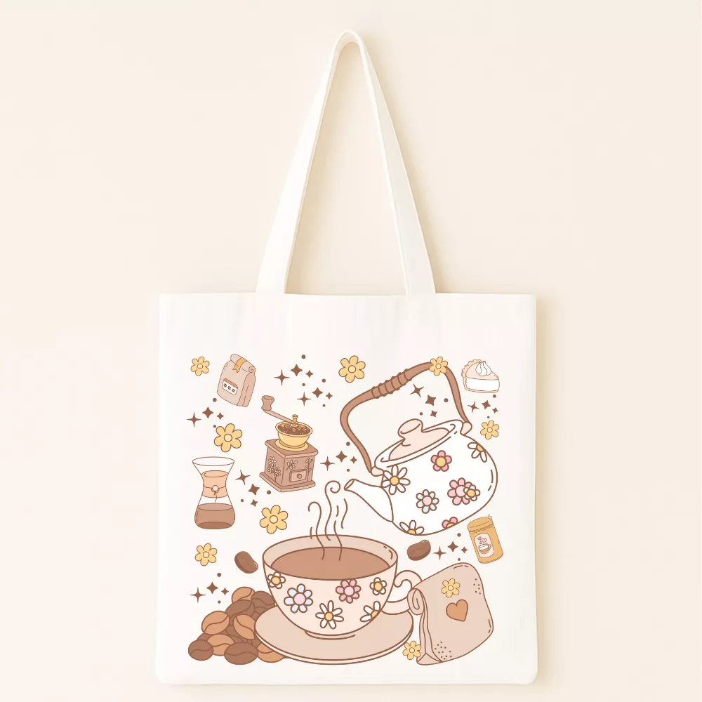A Bliss Coffee Vászontáska azoknak készült, akik imádják a meghitt, otthonos hangulatot és a kávé illatával átitatott pillanatokat. A táska központi grafikáját vintage stílusú elemek díszítik: kávébabok, bájos virágmintás csésze, apró teáskanna és régi kávédaráló, mind puha barnás-bézses pasztell árnyalatokban megrajzolva. A dizájn melegséget, nyugalmat és egy igazi „slow living” vibe-ot áraszt — mintha egy csendes, napsütötte kávézó hangulatát hordoznád magaddal.