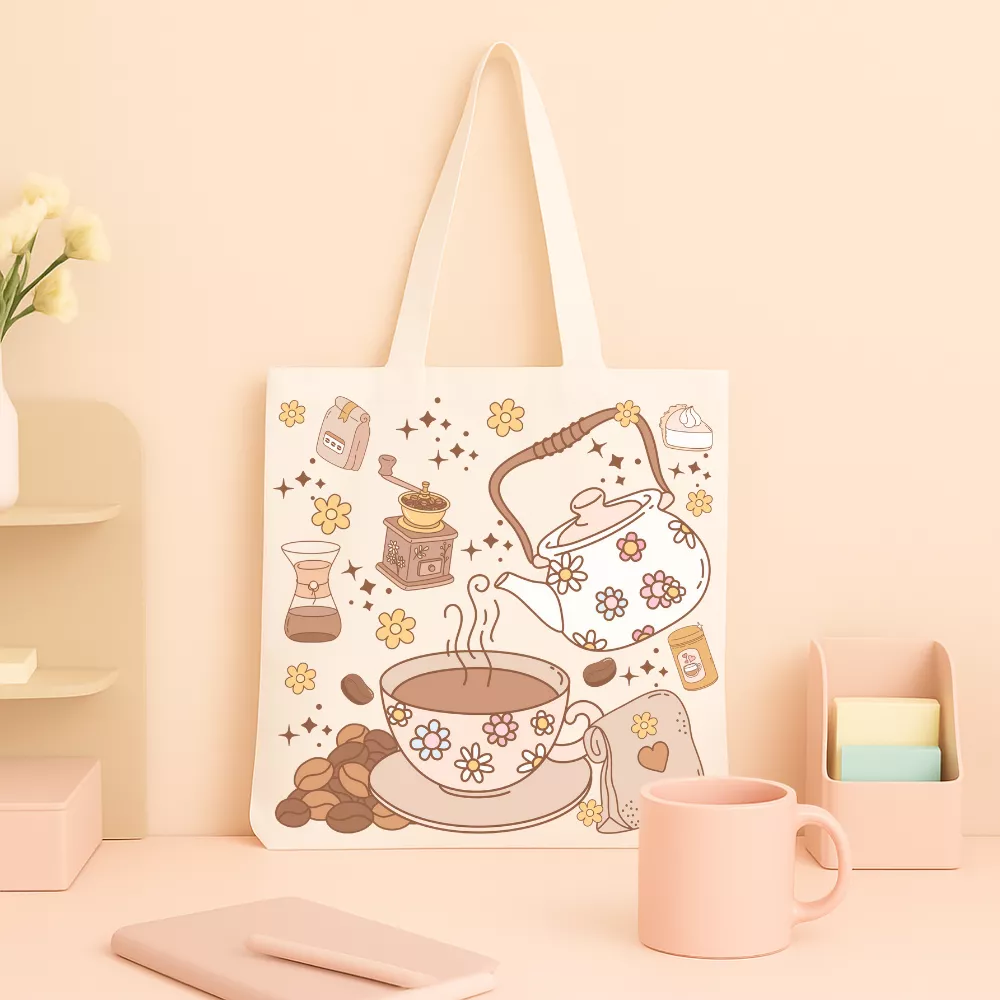 Ez a táska azoknak szól, akik szeretnék magukkal vinni a kávézás meghitt pillanatait bárhová. A rajzolt részletek és a nosztalgikus színvilág megidézik a csendes reggelek lassú, kellemes energiáját — azt a pillanatot, amikor minden egy kortytól indul be igazán.