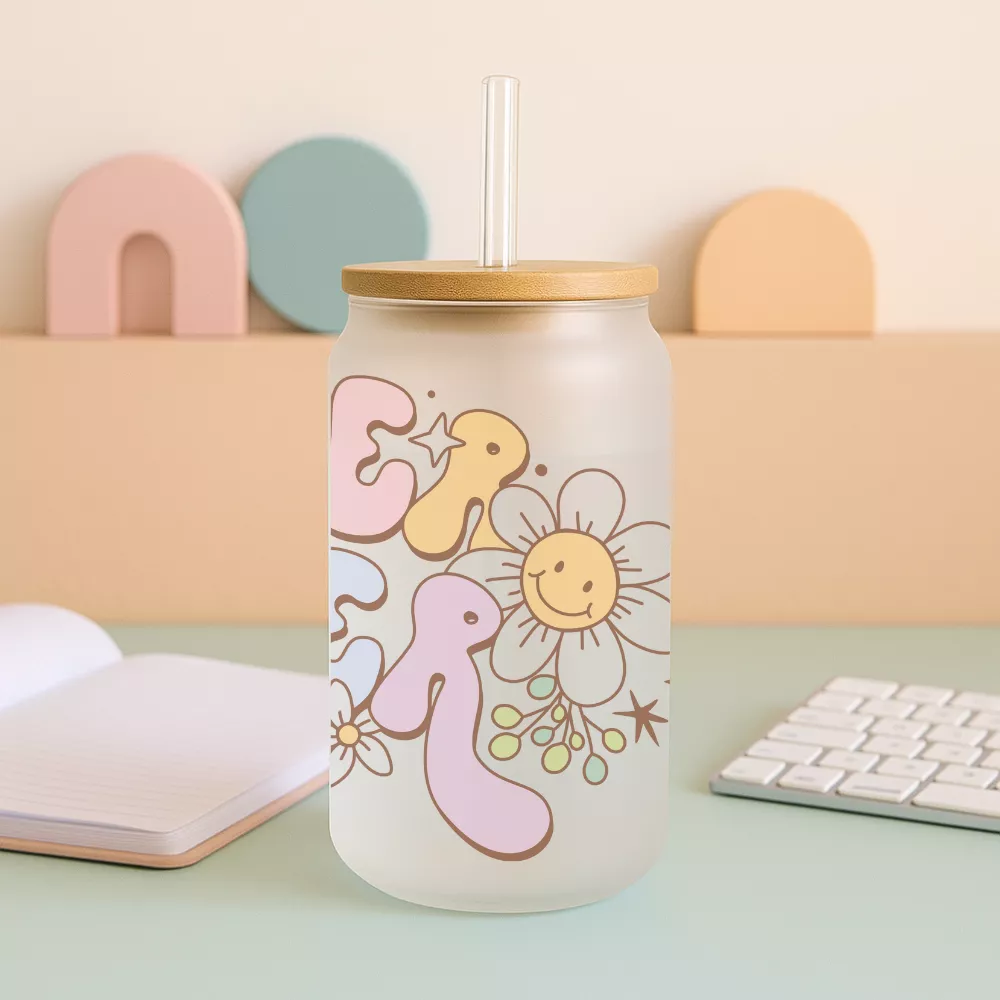 A Bloom Harmony Bambuszfedeles Pohár igazi retró hangulatot hoz a mindennapokba, tele vidám színekkel és pozitív energiával. A „Flower Power” felirat pasztell árnyalatokban ragyog, körülötte mosolygós virágok és játékos motívumok teremtik meg a 70-es évek békés, bohém életérzését. Ez a pohár tökéletes választás mindenkinek, aki szereti a laza, természetközeli és jókedvű dizájnt.