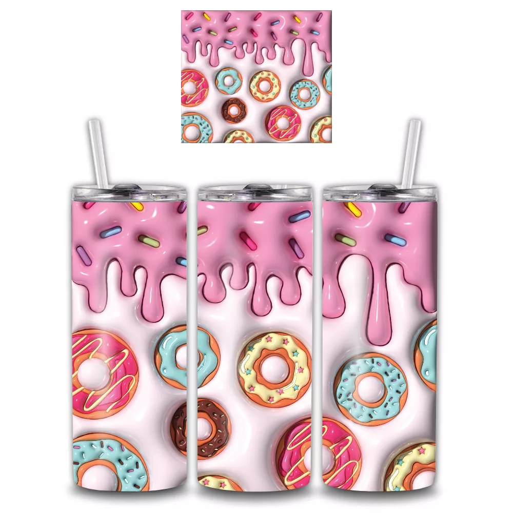A Candy Cloud Alumínium Kulacs igazi édesség-univerzumot varázsol a hétköznapokba. A tetején végigfutó rózsaszín cukormáz csurgása játékos, 3D hatású díszítéssel olvad bele a háttérbe, miközben alatta színes, cukros mázas fánkok sorakoznak egymás mellett. A minták úgy néznek ki, mintha egy friss, látványos cukrászati kirakat elevenedne meg a kulacson – vidám, édes és vizuálisan ellenállhatatlan.