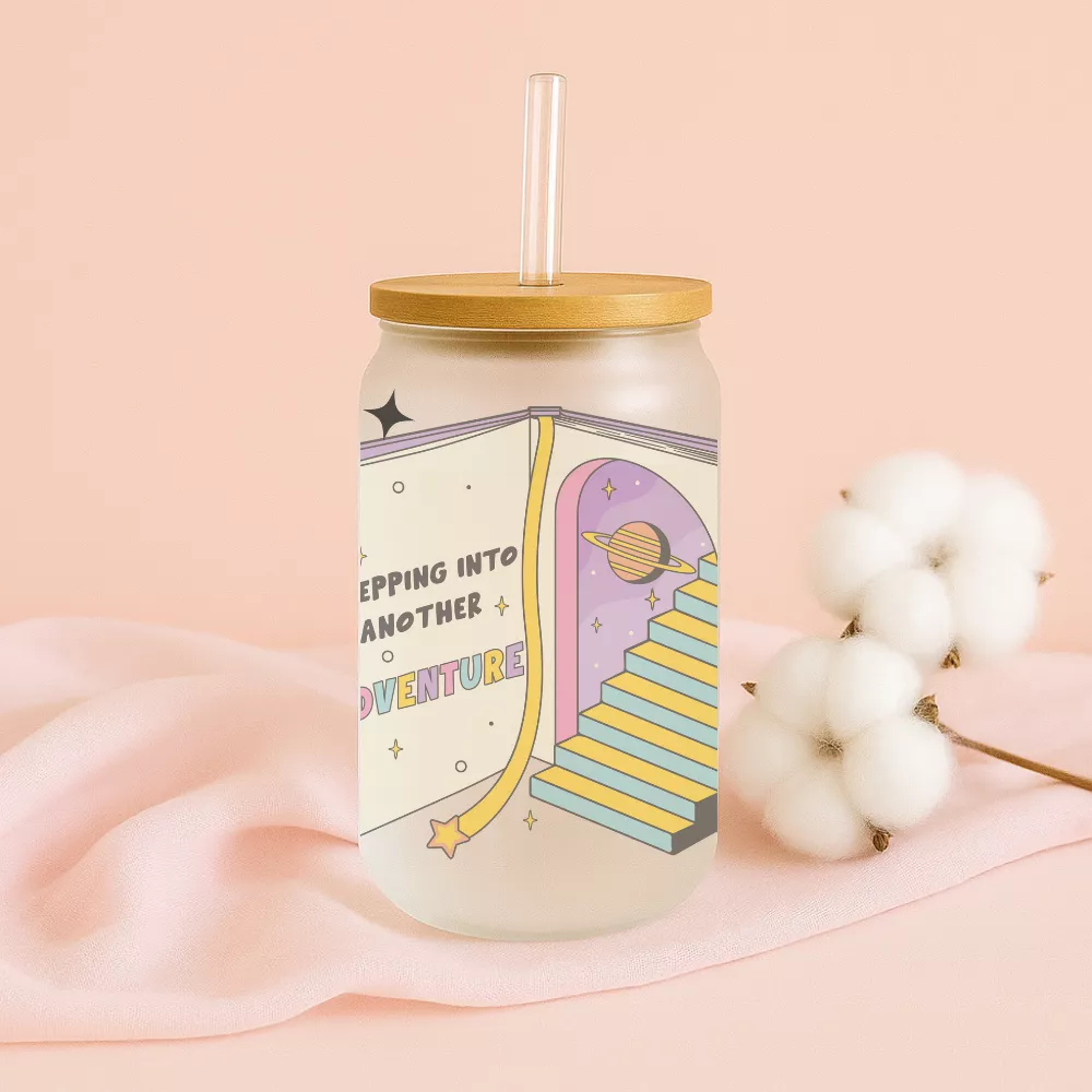 A Cozy Library Bambuszfedeles Pohár minden könyvmoly álma: egyetlen korty közben is úgy érezheted, mintha egy új történetbe lépnél át. A pohár központi grafikáján egy mesés, megnyíló könyv látható, amelyből egy csillagokkal szegélyezett lépcső vezet egy másik világba – pontosan úgy, ahogy az olvasás varázsa képes elrepíteni bennünket a hétköznapokból. A felirat is ezt erősíti: Stepping into another adventure.
