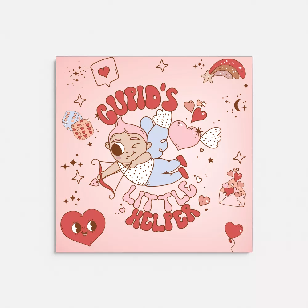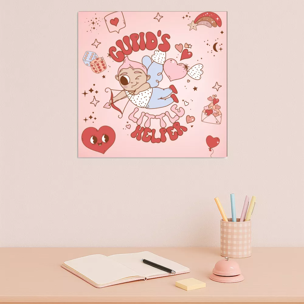 A Cupid Magic Alumínium Kép egy igazán bájos, szeretettel teli dekoráció, amely a romantika és a játékosság tökéletes egyensúlyát hozza el az otthonod falára. A központi grafikán egy kacsintó, apró Cupido jelenik meg, aki íjával és nyilával épp bevetésre indul, hogy egy kis extra szeretetet csempésszen a napodba. Körülötte szívecskék, csillagok, borítékok, szivárvány és finom pasztell díszítőelemek lebegnek, miközben a Cupid’s Little Helper felirat kedvesen és humorosan teszi teljessé az összhatást.