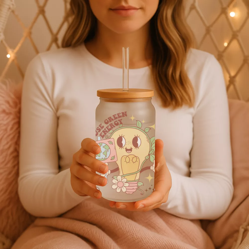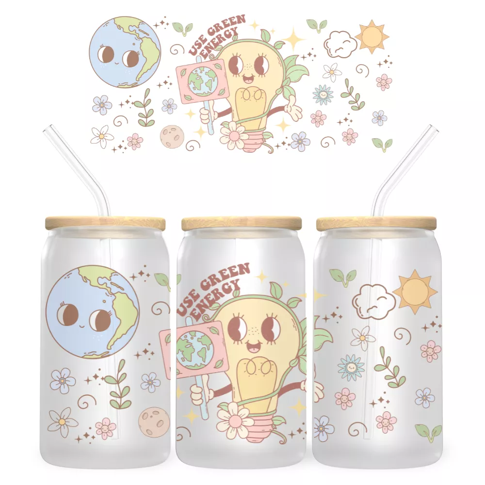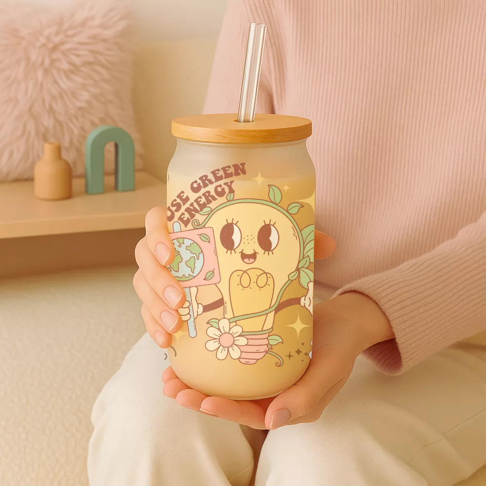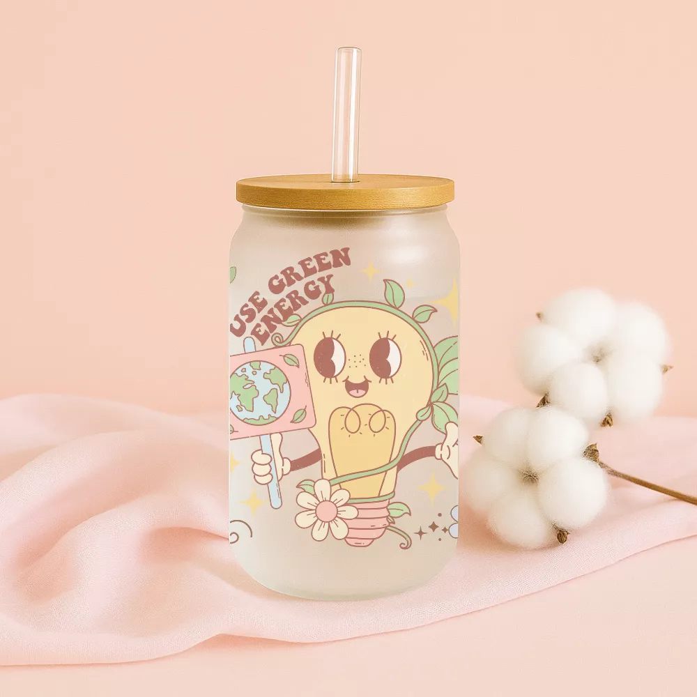A Floral Soul Bambuszfedeles Pohár egy kedves, optimista üzenetet hordoz: apró mindennapi döntéseinkkel is tehetünk a bolygónkért. A mosolygó földgolyó és a vidám égő villanykörte együtt jelenik meg a poháron, mintha azt mondaná: válassz tudatosan, válassz tisztán. A lágy pasztellszínek, a virágok és a napfényes részletek harmonikus, szerethető hangulatot teremtenek.