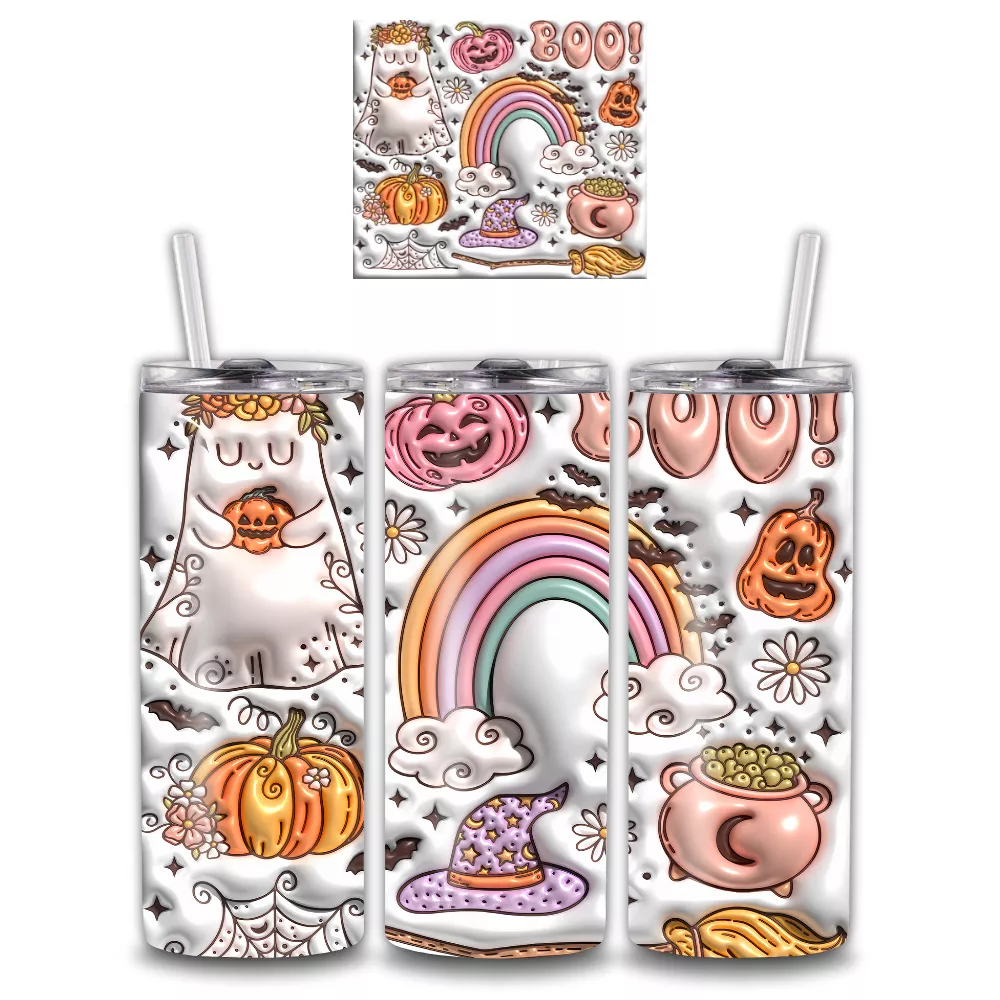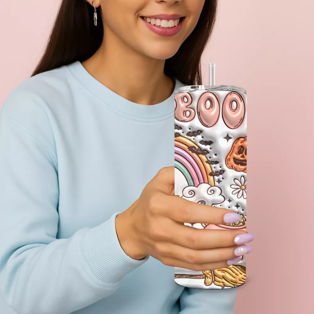 A Ghost Creeper Alumínium Kulacs a cuki és varázslatos Halloween-világ tökéletes megtestesítője. A dizájn középpontjában egy kedves kis szellem áll, körülötte pasztell szivárvány, sütőtökök, boszikalap, üst, pókháló és vidám 3D hatású motívumok. A lágy rózsaszín, barack, menta és lila árnyalatok egy játékos, „nem is olyan ijesztő” Halloween hangulatot keltenek, így a kulacs remek választás azoknak, akik a szezon aranyosabb oldalát kedvelik.