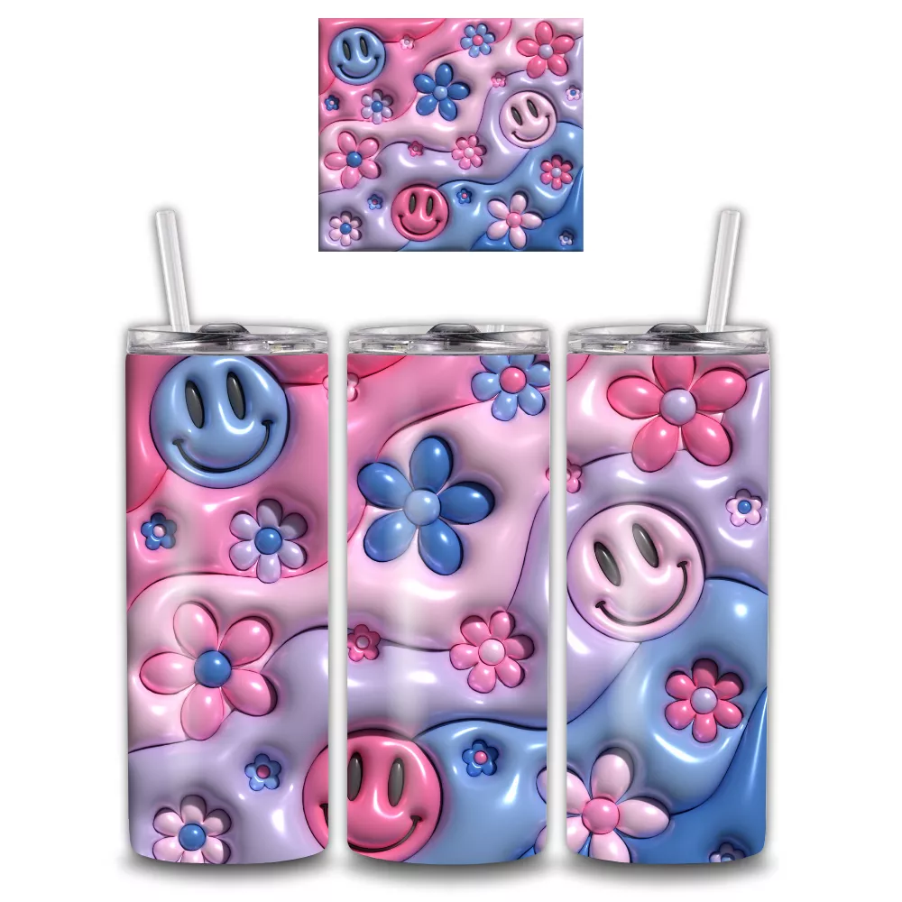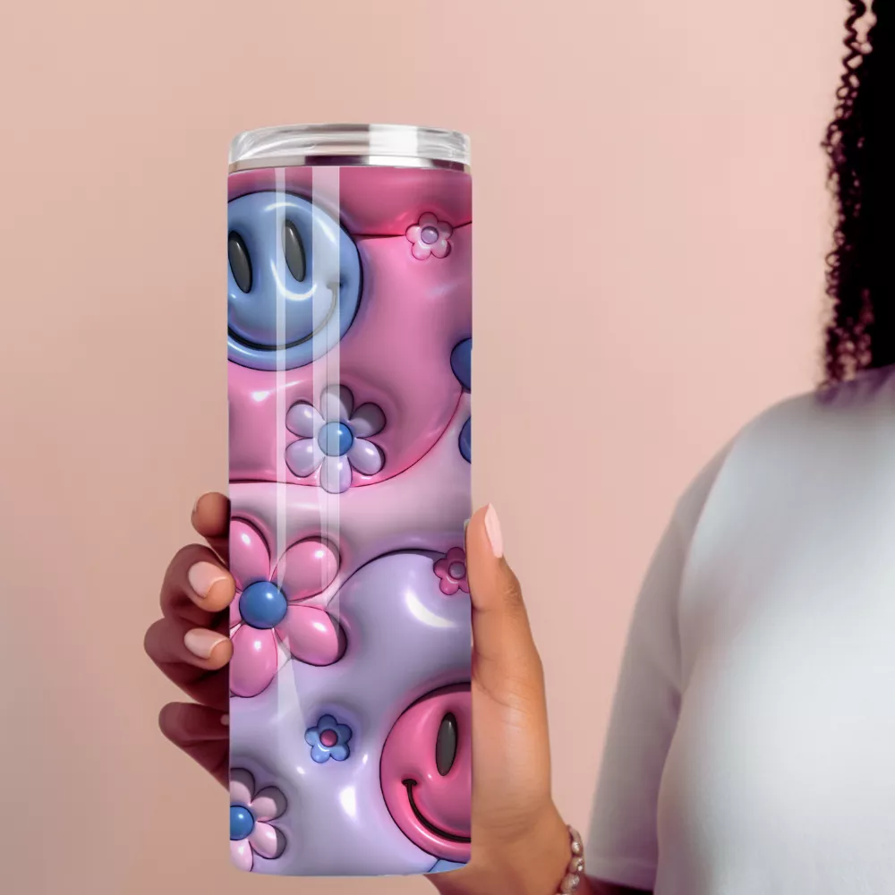A Groovy Glow Alumínium Kulacs a rózsaszín–lila–kék pasztell hangulat tökéletes harmóniája. A fényes, 3D hatású smiley fejek és virágminták játékosan hullámzó háttéren táncolnak, így minden korty egy kis nosztalgikus, retro életérzést hoz el. Ez a kulacs egyszerre vagány, vidám és ultratrendi – azoknak készült, akik szeretnék, ha a kiegészítőik nemcsak szépek, hanem hangulatfényként is működnének a hétköznapokban.