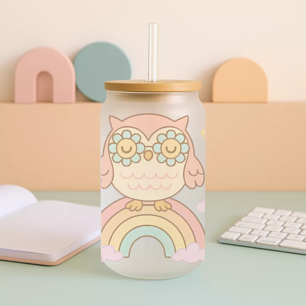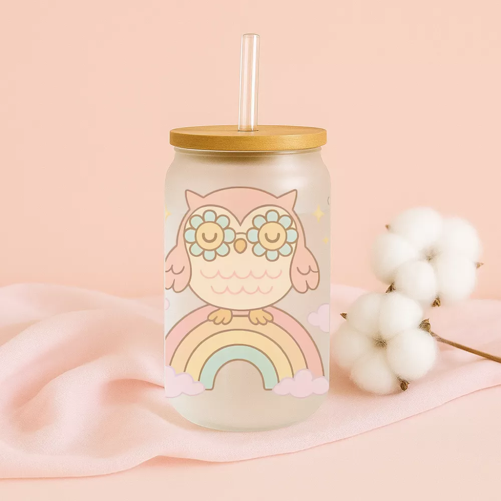 A 473 ml-es Groovy Owl Bambuszfedeles Pohár ideális választás jegeskávéhoz, teához, smoothie-hoz vagy limonádéhoz. A matt üveg modern és letisztult, miközben a pasztell minták játékos hangulatot kölcsönöznek. A természetes bambusz tető környezetbarát és tartós, az üveg szívószál pedig újrahasznosítható és higiénikus – tökéletes a tudatos, stílusos italélményhez.