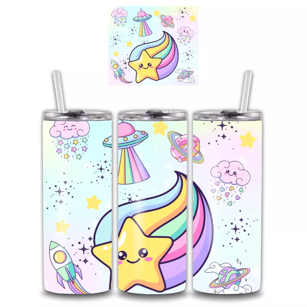 Tökéletes társ a reggeli jegeskávéhoz, a délutáni smoothiehoz vagy a frissítő limonádéhoz. A Pastel Universe Alumínium Kulacs nemcsak praktikus, hanem igazán vidám ajándék is – ideális bárkinek, aki szereti az édes, színes és pozitív hangulatot. Egy kis csillagfény minden napra!
