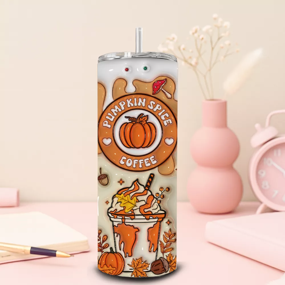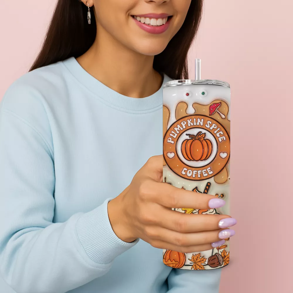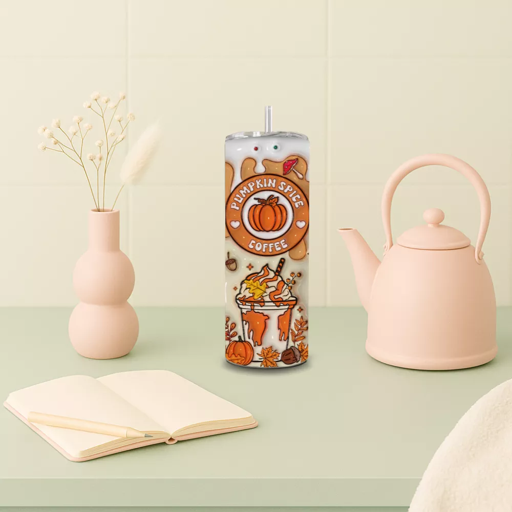 A Pumpkin Latte Alumínium Kulacs az őszi kávéhangulat esszenciáját ragadja meg. A meleg karamellás, krémes árnyalatok, a csöpögő latte textúra, a tökös motívumok és az őszi levelek együttese igazi pumpkin spice életérzést közvetít. A különböző kávéitalok és részletgazdag illusztrációk barátságos, kuckózós hangulatot teremtenek, amely tökéletesen illik az őszi időszakhoz.