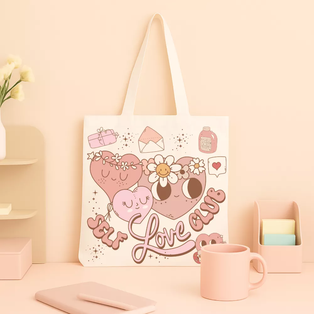 Tökéletes ajándék önmagadnak, barátnőknek, születésnapra, Valentin-napra vagy bárkinek, akinek jól jön egy gyengéd emlékeztető arra, hogy az önszeretet mindig jó döntés. A Self Love Club Vászontáska nemcsak praktikus kiegészítő, hanem egy napi affirmáció is.