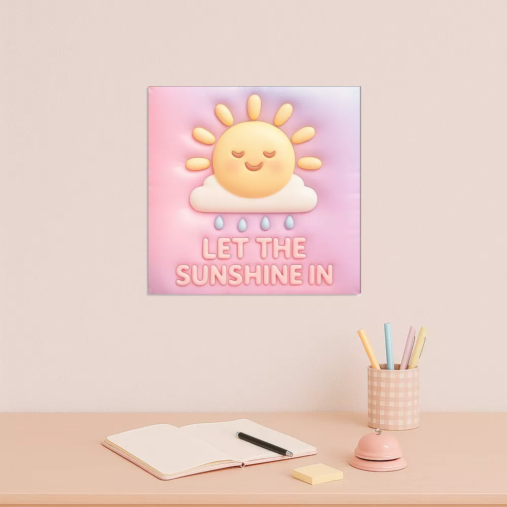 A Stunning Sun Alumínium Kép a derű, a fény és a pozitív energiák megtestesítője. A mosolygó nap motívum és a pasztell árnyalatok meleg, barátságos hangulatot árasztanak, miközben a finom 3D hatás életre kelti a dizájnt. A magas HD minőségű nyomat precíz és részletgazdag, a 30×30 cm-es méret pedig ideális választás bármely helyiségbe, ahol egy kis napsütést szeretnél látni.