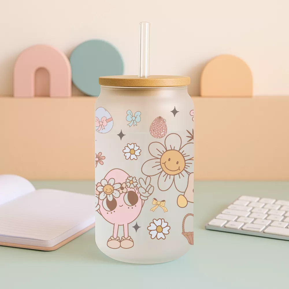 A 473 ml-es frosted (matt) üvegpohár elegáns és modern megjelenést biztosít, miközben szépen kiemeli a színes mintákat. A természetes bambuszfedél stílusos és környezetbarát megoldás, amely segít az ital frissességének megőrzésében. A pohárhoz tartozó újrahasználható üveg szívószál pedig praktikus és fenntartható alternatíva a mindennapi használathoz.